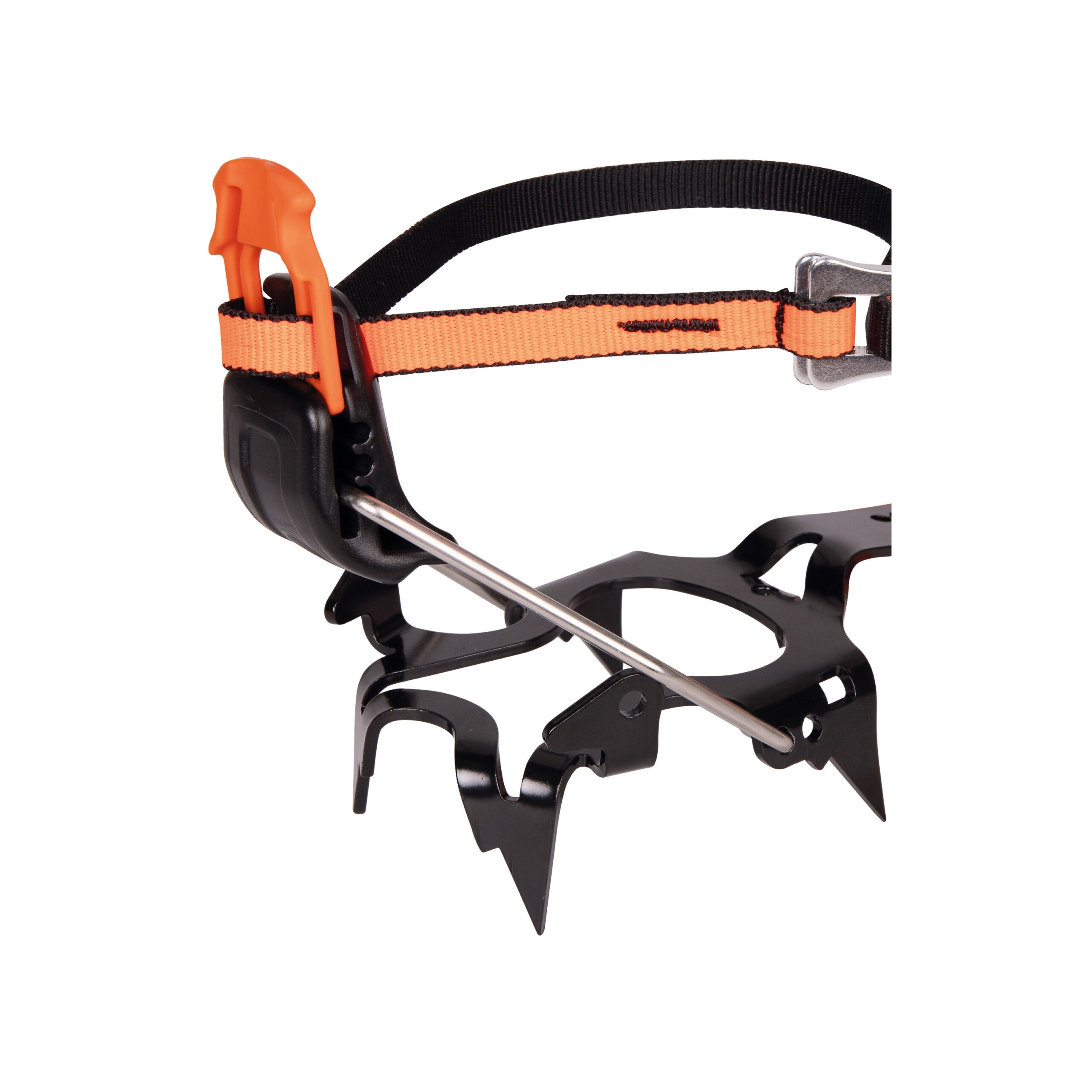 Diğer yandan, krampon asimetrik tasarımıyla modern dağcılık botlarının kıvrımlarını mükemmel bir şekilde sarar. Yani, bu özel yapı sayesinde ayağınızla donanım arasında kusursuz bir uyum yakalarsınız. Üstelik, mikro ayarlanabilir bağlantı çubuğunu topuk parçasıyla entegre ederek burulma direncini anında artırırsınız. Hatta, marka kramponun tamamını darbe enerjisini en iyi şekilde emen krom (NiCrMo) çelikten üretir. Böylece, bağlantı noktalarındaki boşlukları yok ederek teknik arazilerdeki esneme hissini tamamen ortadan kaldırırsınız. Bunun dışında, ayağınızın altında olağanüstü bir sağlamlık ve güç hissedersiniz.