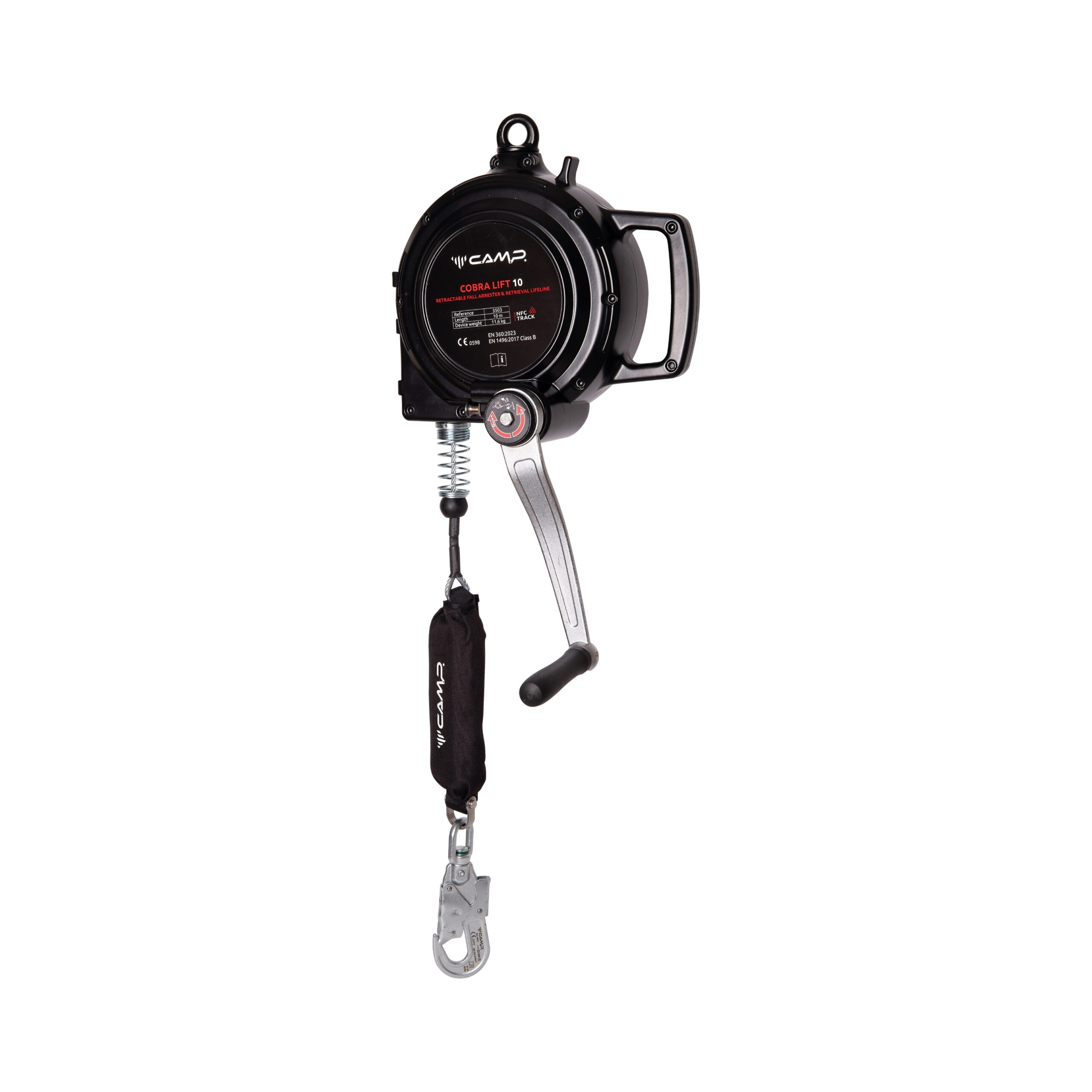 Acil durum kurtarma koluna (vinç) sahip, 10 metre çelik halatlı düşüş durdurucu. 140 kg kapasitelidir. Tripod üzerine monte edilebilir veya asılarak kullanılır. Alüminyum gövde ve NFC çiplidir.
